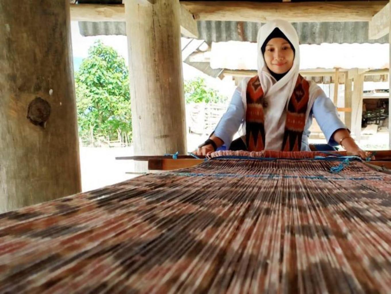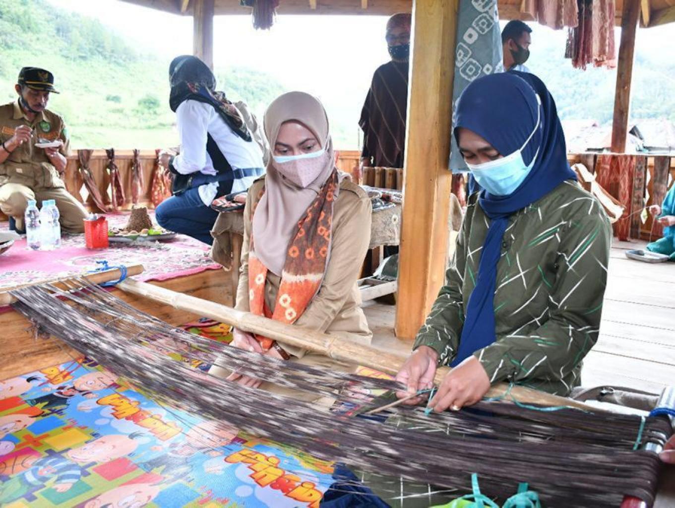 Pengunjung dapat secara langsung melakukan proses menenun diambil mengabadikan gambar