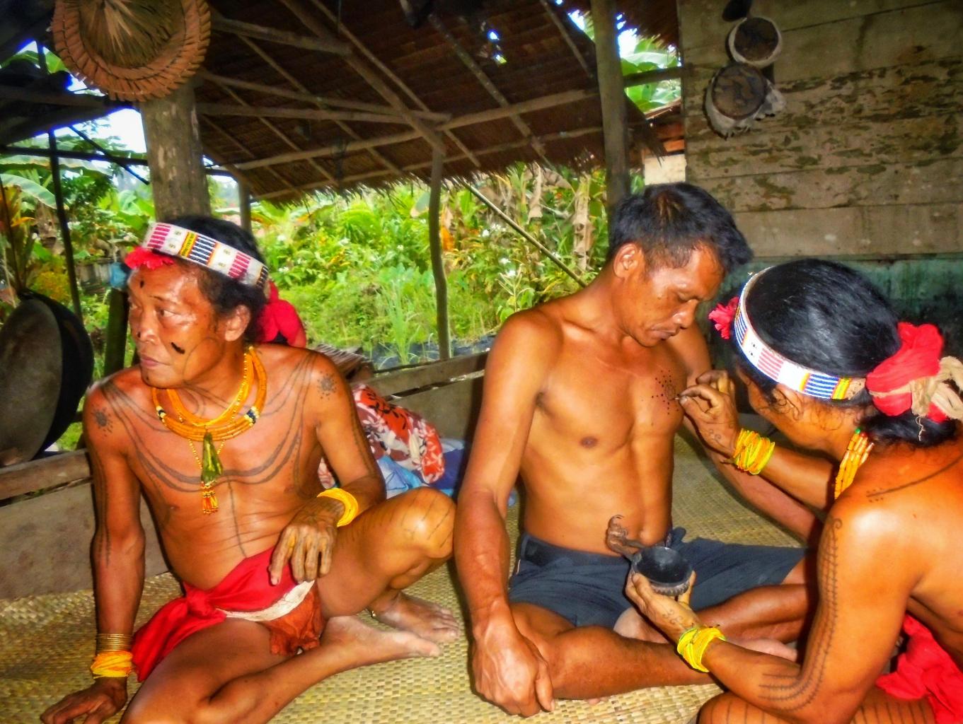 Tato (tattoo). Tato (tattoo) adalah suatu tanda yang dibuat dengan memasukkan pigmen ke dalam kulit. Dalam istilah teknis, rajah adalah implantasi pigmen mikro. Rajah dapat dibuat terhadap kulit manusia atau hewan. Rajah pada manusia adalah suatu bentuk modifikasi tubuh, sementara rajah pada hewan umumnya digunakan sebagai identifikasi. Tato berasal dari bahasa Tahiti, tatu yang artinya adalah tanda. Tato dalam bahasa Mentawai adalah titi. Ada sedikit perberdaan bunyi asal kata tato. Sedangkan fungsi tato secara umum biasanya adalah untuk menandakan seseorang yang berasal dari komunitas tertentu atau kelas sosial atau untuk mempercantik diri. Khusus bagi masyarakat suku Mentawai tato memiliki lebih dari sekedar tanda sosial di masyarakatnya. Bagi mereka, tato atau titi merupakan cerminan hubungan yang erat antara pribadi masyarakat mentawai dengan lingkungan sekitar.