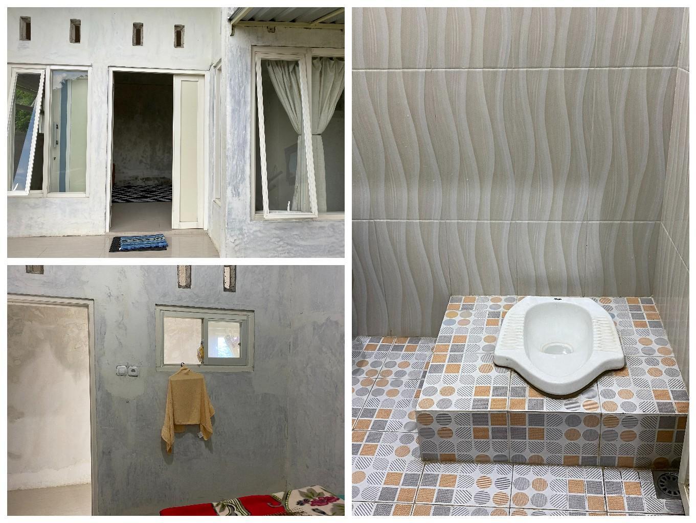 kamar homestay dengan ventilasi udara yang cukup, lengkap dengan kunci kamar, ruang tamu, dapur dan kamar mandi