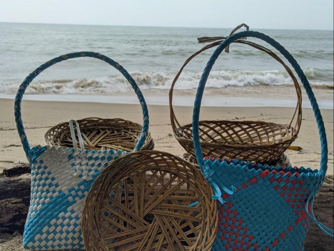 Berbagai produk kerajinan anyaman yang dibuat secara home made, ada Piring, Tempat Parsel, dan Tas.